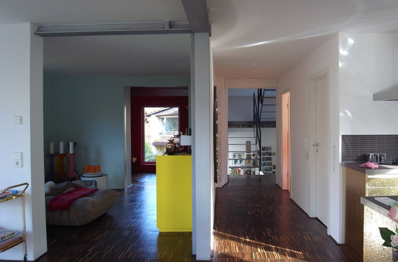 Die Struktur des Hauses wird so verändert, dass die klein gegliederten Räume aufgebrochen und dadurch zu einer fließenden Raumabfolge werden.